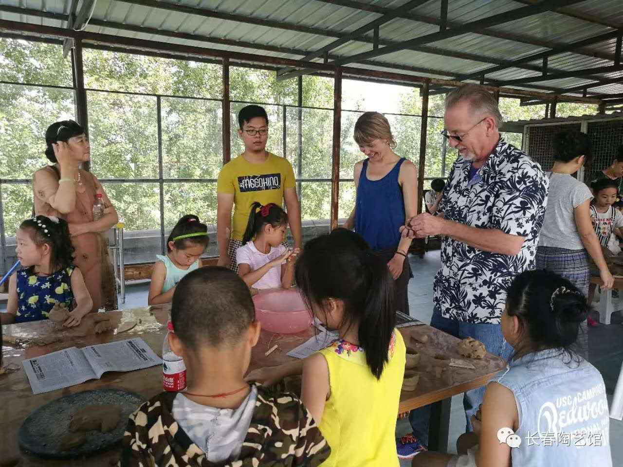 墨菲还主动承担了广大青少年陶艺体验活动的指导教师工作。每次活动,他都亲临体验课堂。面对初学的孩子们,亲手示范,不厌其烦,循循善诱。孩子们都亲切地称这位外国长者为“洋爷爷”,还在他生日期间专门准备了鲜花和蛋糕和他一起过生日。